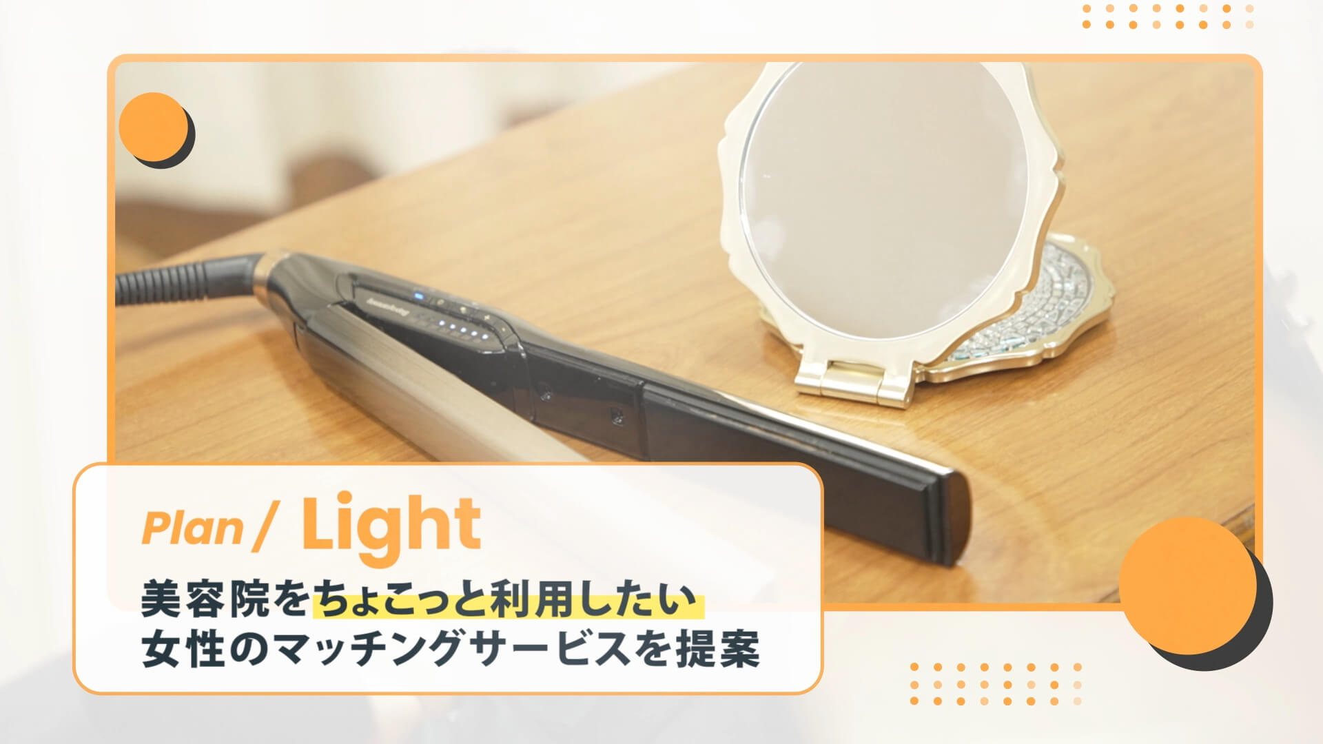 美容院と利用者が〈Light〉に登録すると、お店の情報がアプリのマップに反映され、利用者は外出先でアプリ上に表示されている登録店舗に自由に来店して、ヘアセットの為の道具と場所を借りて自分で髪型を直すことができます。利用希望者のニーズだけでなく、美容院が抱えている顧客獲得の課題などもアンケートからしっかり拾い上げ、利用者にも美容院にもメリットがあるプランを考えられていました。