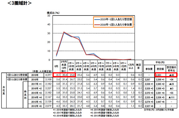 ※各費用の上下0.1%の範囲のデータを無効数値として除いて集計している。歓送迎会は店舗で行うもののみを尋ねている