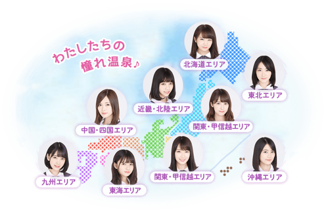 乃木坂メンバーの9名が日本全国の今行きたい温泉地や、その周辺の立ち寄りスポットを紹介します。