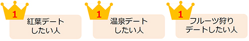秋の人気コンテンツ「紅葉」「温泉」「フルーツ狩り」の3部門でデートしたい人№1を獲得!